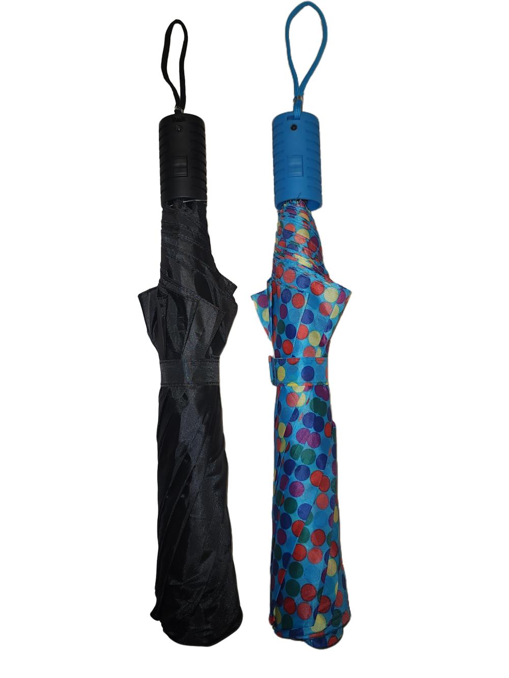 | Описание | 2 складных автоматических зонта. Средняя часть рамы выполнена из металла и последних ребер из стекловолокна, пластиковая ручка соответствующего цвета, твердый полиэстер. |